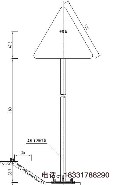 百分之八十以上的單柱式交通標(biāo)志都是采用鋼管89mm制作,采用熱侵鍍鋅處理,常規(guī)尺寸立柱直徑φ89mm*厚度4.5mm*高度3000mm,基礎(chǔ)法蘭盤400mm*400mm*10mm,地腳螺栓M20*L=710mm。其他常見尺寸有φ76、114、121、140、152、165、180、194、219等都是單柱式標(biāo)志桿的鋼管直徑,高度則根據(jù)公路規(guī)劃測量高度情況而定。一套標(biāo)志桿是由立柱、底座法蘭盤、基礎(chǔ)法蘭盤、底座加勁肋、地腳螺栓、螺母、標(biāo)志牌、抱箍、滑動槽、反光膜等材料組裝而成,基礎(chǔ)挖坑采用混凝土澆筑,一般5-7天則可安裝。
